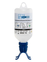 The 500 ml bottle comes with the ergonomic DUO eyecup, which makes it possible to rinse both eyes at the same time.