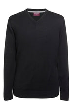 V-neck, long sleeve, ribbed neck, cuff and hem, contrast inner neck strip