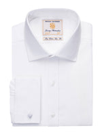 Tailored from a 100% superfine cotton, easy to iron fabric. Removable metal collar stiffeners, taped seams. Complimentary silk cuff knots.